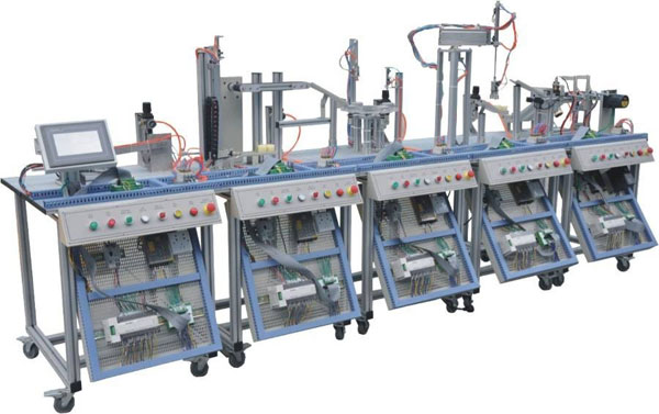 模塊式柔性自動(dòng)化生產(chǎn)線實(shí)訓(xùn)系統(tǒng)由六個(gè)站組成,分別為:上料檢測(cè)站、搬運(yùn)站、加工站、搬運(yùn)安裝站、安裝站和分類站,控制系統(tǒng)可以選用西門子、三菱的PLC進(jìn)行控制,具有較好的柔性,即每站各有一套PLC控制系統(tǒng)獨(dú)立控制,在單個(gè)培訓(xùn)完成以后,又可以將相鄰的兩站、三站…直至六站連在一起,學(xué)習(xí)復(fù)雜系統(tǒng)的設(shè)計(jì)、安裝、編程、調(diào)試和整機(jī)運(yùn)行。